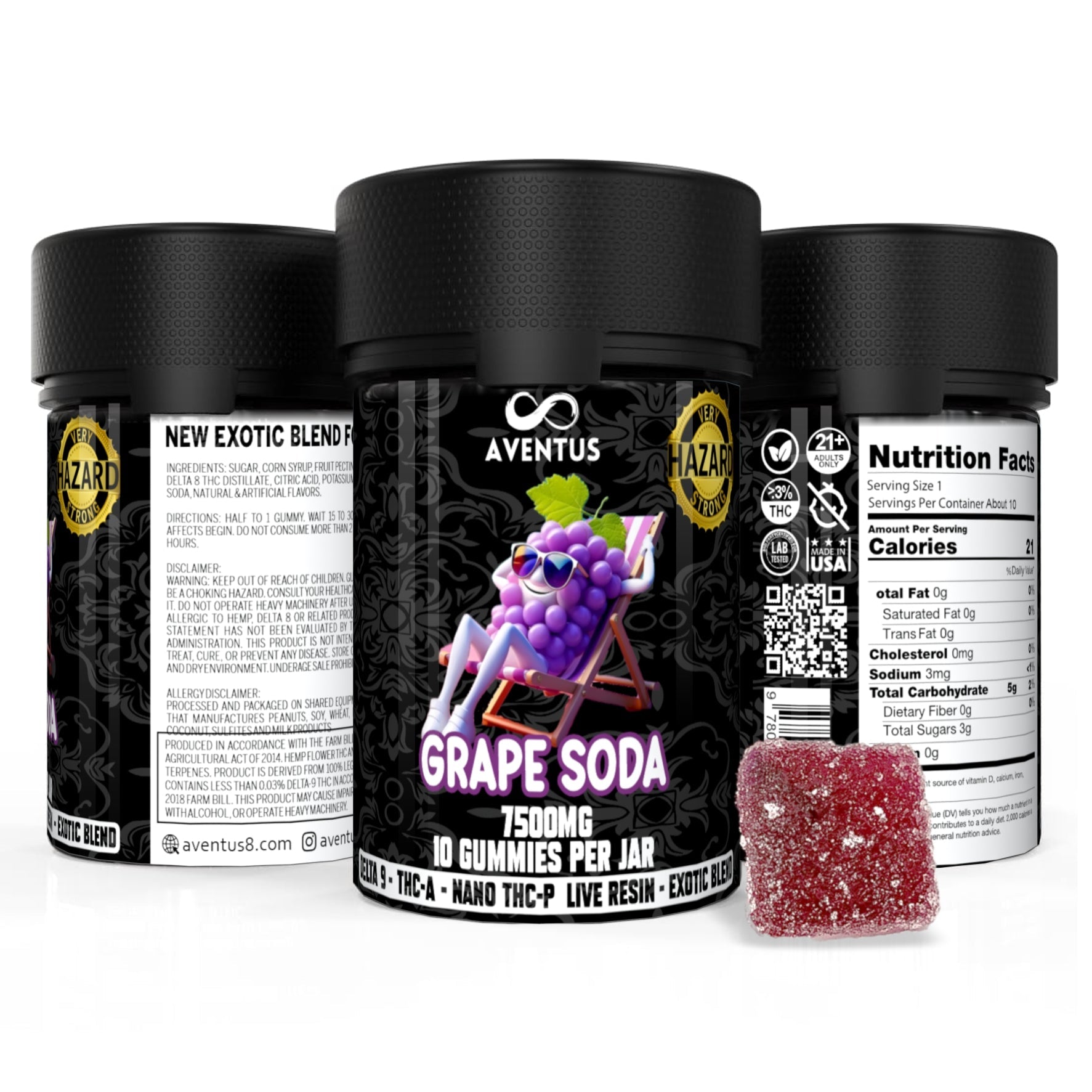 7500mg AVENTUS8 GUMMIES GRAPE SODA DELTA 9 + THC-A + NANO THC-P LIVE RESIN EXOTIC BLEND